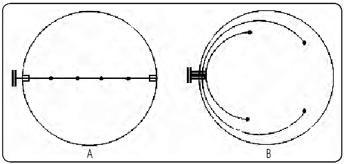 2、B是热电偶成环形分布,从反应器侧面法兰口插入,按提前设计好的路径进行安装。该方案根据不同的工艺要求需要二次设计安装支架,可以在反应器内构件上焊接支架,对于测温点没有内构件的可以在反应器器壁上焊接支架,或独立设计支架,如图2所示。其优点是可应用于测温点多且非直线分布的场合;缺点是设计量大,安装复杂,支架全部使用螺栓联接,对支架长周期使用的稳定性提出较高的要求。
