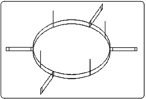 根据工艺包专利商要求,催化剂床层温度点分布距离反应器器壁1m左右即可,若使用环形支架方案,则支架体积较大、质量大、螺栓联接多,极易受催化剂沉降影响其稳定性。因此,初始设计在测温层同一平面的反应器器壁上焊接多个不同结构的支架,支架沿圆周均匀分布,热电偶沿着预焊接好的支架路径敷设安装。支架如图3所示。