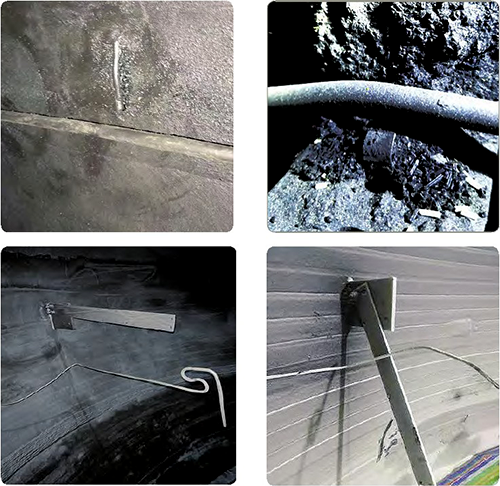 通过渣油加氢换剂检修时发现,延长支架严重下垂,大量热电偶从支架脱落,甚至直接断裂,如图4所示。分析原因主要有两点: