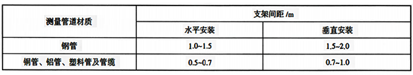 15、仪表管道应采用管卡固定在支架上。当管道与支架间有相对运动时,应在管道与支架间加软垫。支架间距宜符合表1。