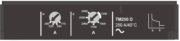 最左侧的Ir代表过负荷保护整定电流,整定范围175A~250A,热磁式断路器的过负荷保护整定范围一般为0.7~1.0。