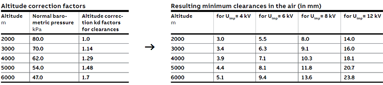 例如当海拔为2000米时,电气间隙的倍增系数为1,当海拔为4000米时,如果还想保持原来的额定冲击耐受电压值,其电气间隙需要增加至原来电气间隙的1.29倍。