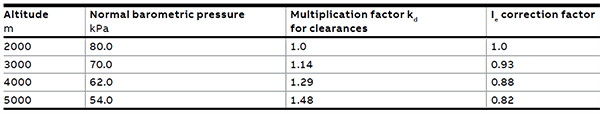 其中H为海拔高度,m在低压一般取0.5,例如对于4000米海拔时Ka系数为1.28,意味着如果原来低压电器的额定绝缘电压为690V(2000米海拔),那么4000米海拔时其额定绝缘电压要达到690V×1.28≈883.2V。