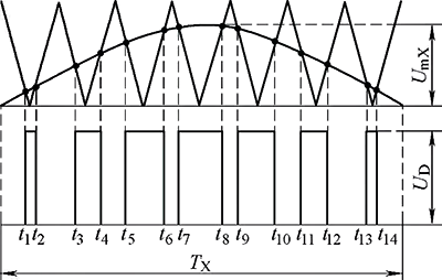 要进行正弦脉宽调制的关键是如何确定上升沿与下降沿的精准时刻。