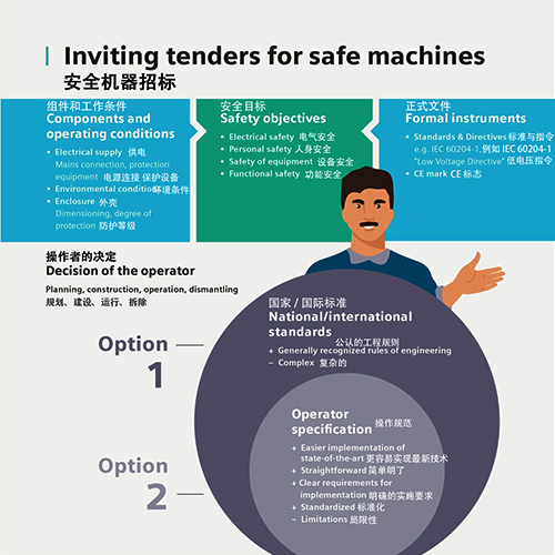 运营商在招标购买符合标准并因此安全的机器时有两种选择。他们可以只规定一般有效的标准,也可以在这些标准的框架内,根据自己的需要制定技术规范。