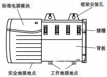 ControlLogix系统框架(也称为底盘,指安装模块的物理支架,带有插槽和背板,有些资料也称为机架。)用来安装除电源模块之外的各种系统模块,有4槽 、7槽、10槽、13槽和17槽等5种框架尺寸,目录号分别为1756-A4、A7、A10、A13和A17,插槽编号都是从0号开始。框架的背板有高速总线,各种模块通过背板总线进行数据传递和交换。安装了系统标准电源模块的1756-A4框架如图所示。