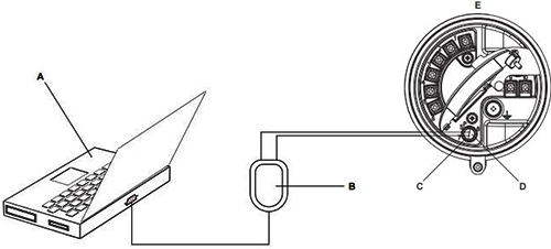 如果变送器位于危险区域,请勿使用服务端口连接。服务端口连接需要打开接线腔室,而在接通了变送器电源的情况下打开接线腔体可能会导致爆炸。要在危险环境中连接变送器,请采用无需取下变送器外壳盖子的连接方法。