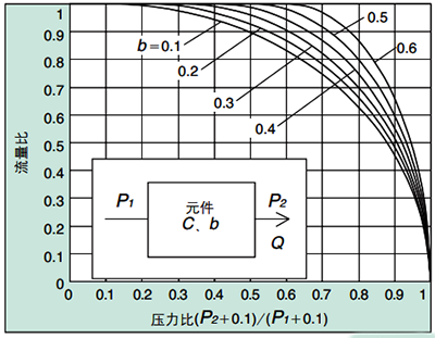 以三位五通电磁阀SY3320-5DZD-M5为例,查表可知其C=0.48dm³/(s·bar),b=0.46;