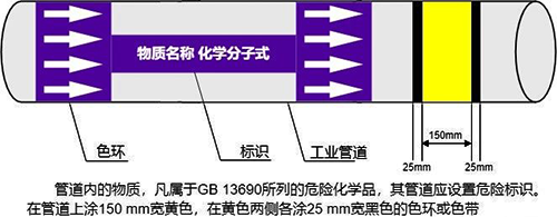 适用范围:管道内的物质,凡属于GB13690所列的危险化学品,其管道应设置危险标识。