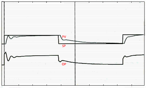 2、该控制回路处于闭环自动控制模式,设定值阶跃变化时PID控制器输出会相应变化。如果控制回路处于手动控制模式,则设定值不跟踪时设定值直线不变或者设定值跟踪时设定值和过程变化重合。