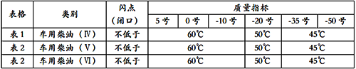 -50号车用柴油:适用于风险率为10%的最低气温在-44℃以上的地区使用。