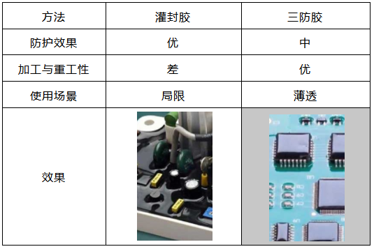 针对高可靠性产品仍建议采用热固胶的灌胶方式部分区域无法灌胶处理时可以进行纳米镀膜的三防胶防护结合。
