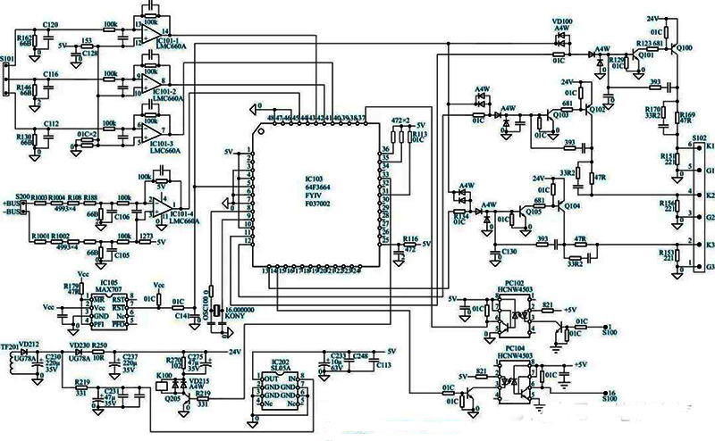 若测得S102端子脉冲哪怕只有一路是正常的,则基本可以判断MCU工作是正常的,不正常的两路在后级脉冲放大电路。