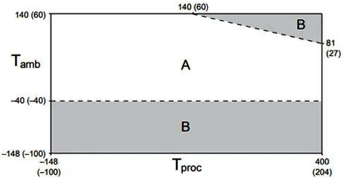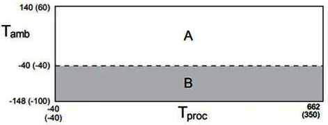 如下环境和过程温度限制图仅用作一般指导,如果过程条件接近灰色区域,请咨询技术支持部门。