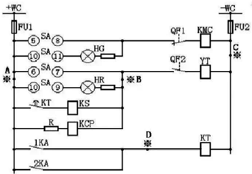 再比如B、C两点接地,开关合闸后,辅助开关闭合,B、C两点均接电源负,此时,B、C两点将被短接,短掉了分闸线圈,若发生保护动作,也不会动作,造成保护拒动。