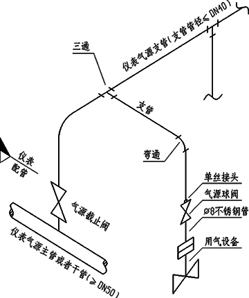 9.3.6 仪表空气支管宜从主管上部引出并在水平管段上设切断阀。