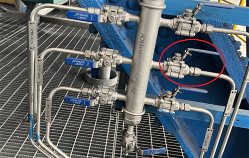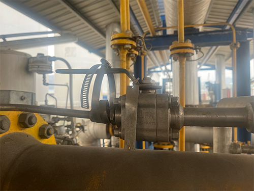 2)将气源手阀的手柄用喉箍/扎带/铁丝等固定在相应的仪表风管道上,待需要动作气源手阀时拆除扎带;