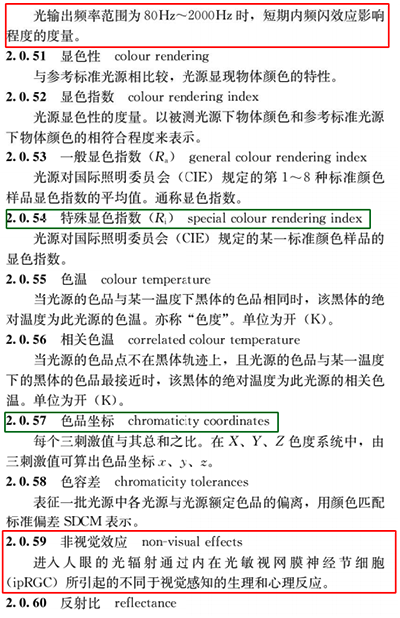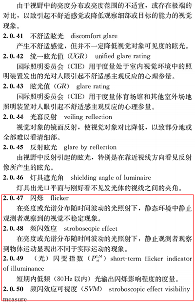 在术语中,新增的闪烁、频闪效应、(光)闪变指数、频闪效应可视度、非视觉效应以及智能照明控制系统这些需引起我们重视。