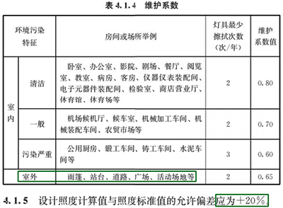 4.5条款中对室外空间使用的灯的色容差做了补充