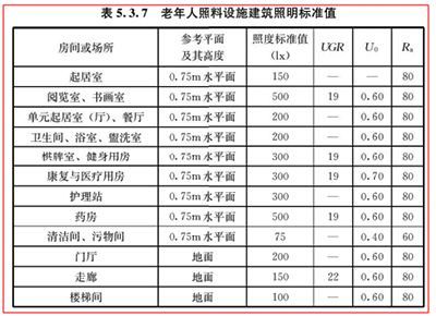 5.3.7新增了老年人照料设施建筑照明标准值,紧跟时事可为养老院,老人学校等老年人项目、活动作为参考的相应标准。