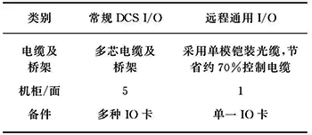 该项目采用远程I/O技术之后,减少了建设成本及维护成本,其中,主项单元采用常规DCSI/O与远程I/O对比见表2所列。