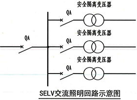 根据强制性工程建设规范《建筑电气与智能化通用规范》GB55024-2022第4.4.3条规定,采用安全特低电压(SELV)供电的照明回路应设置过负荷和短路保护。在图示中有相应的示意图加以说明,便于理解该条款。