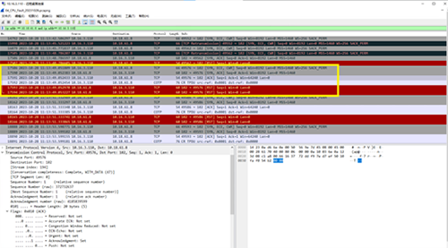 接着是查看 Port:49586这一组连接报文,MES侧的18164到S7服务器侧消失了,这报文丢失了吗?网络状况完好的情况下到底时丢失了还是路由到甚至交换到其它地方?序号1011出现的TCP Out-Of-Order的原因表示1011的Seq=1比莫名其妙出现的1009号报文Seq=3的顺序号小,这表明TCP通信出现乱序,可是乱序为什么出现在网络状况良好,且在连接阶段呢?