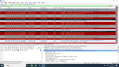 接着是843号报文,该报文的长度是60个字节,与MES侧的17591号报文对应,因为MES侧是在本机抓包,出口的报文54会被填充最小长度的以太网报文,于是在843出现了60个字节的长度应答。