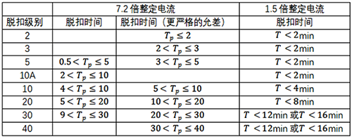 GB/T14048.4标准对脱扣级别的验证是:从冷态开始,7.2倍整定电流下,对于适当的脱扣级别和公差带,应在表3给出的极限值内脱扣。