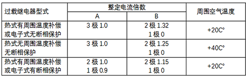 表4 三极过载继电器仅两极通电时的动作范围