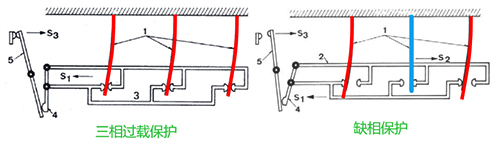 图7 三相过载保护和缺相保护时差动机构动作机