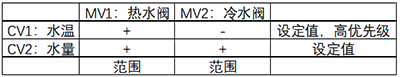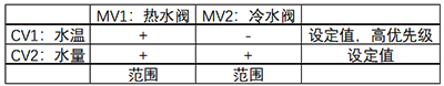 如果用上图下边的先进控制,只要设置水温的高优先级,就会在自由度充足时通知控制水温和水量,在自由度不足时有限保证水温。