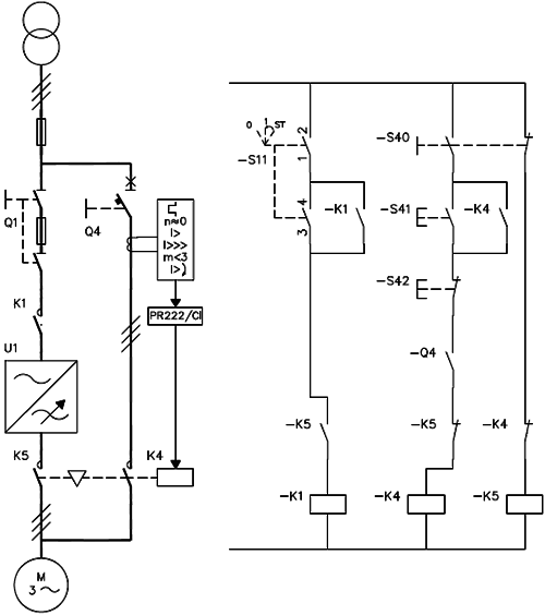 对于变频器出线端接触器K5和旁路接触器K4,西门子也给了三种选型的建议: