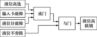 图1中,液位高选表示现场液位计通过比较模块后的输出,输入卡故障是SIS自诊断的通道或卡件故障标志,液位计故障是根据现场液位计故障电流系统做出的判断,这三者任意一个都会触发液位高联锁,这就是控制器的故障安全组态。逻辑描述都是正逻辑,所谓正逻辑就是变量字面描述的事件发生时,变量值为“真”(赋值1);按照GB/T 50770-2013中第11.1.1条要求,逻辑控制器的应用软件采用正逻辑。需要说明的是:正逻辑和故障安全型没有冲突,逻辑控制器的故障安全型是IO模件的输入置位安全“0”,输出模件断开。正逻辑是为了方便逻辑的可读性,避免歧义;逻辑组态的中间变量没有故障安全的概念。