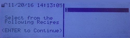2、在批控器显示屏查看是否已经选择了配方1,点击“ENTER”进入密码确认;