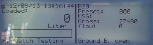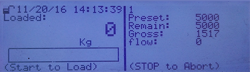 6、当批控器装车量达到设定量后,自动关阀停止装车;如果过程中需要停止装车,点击”Stop”键一次,暂停装车;连续点击”Stop”键两次,则停止装车。