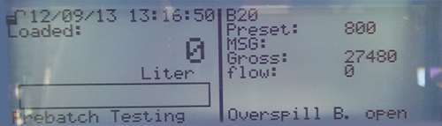 2、装车过程中如果出现溢油报警,在屏幕下方会显示“OVERSIPLL .OPEN”,并伴有红色指示灯常亮,请查看罐体内液位是否已达到溢油传感器位置,报警消除以后请点击“CLEAR”键,再点击“START”键继续装车;