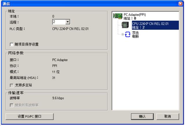 首先,通过设定通讯接口道PC ADAPTER(PPI),联机搜索到CPU