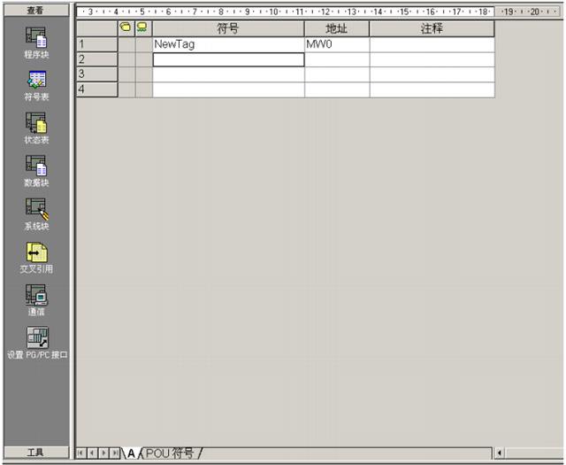 建立符号表变量,连接到 MW0。另外将符号表的原中文表名改为英文。后面可以多次看到这个英文名,如果中文,这些地方都有可能产生不兼容错误。所以尽量避免。 包括变量名也尽量躲开使用中文命名。