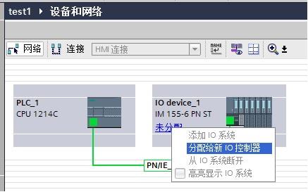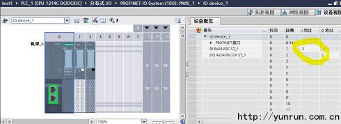 7、选分配给新IO控制器,就把这个分布式IO许配给CPU1214C了,就有地址了,就可以干活了,如下图: