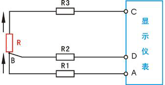 连线到3线制热电阻体的显示仪表,此时会测量AB间电压和BC间电压,然后将两者的差额计算为测量值。